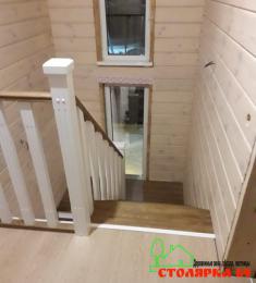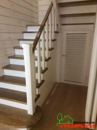 Изготовили и установили комбинированную по цвету и материалу лестницу из сосны и ясеня.
