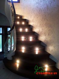 Изготовили и установили евроокна и подоконники из лиственницы, лестницу из дуба с кованным ограждением.
