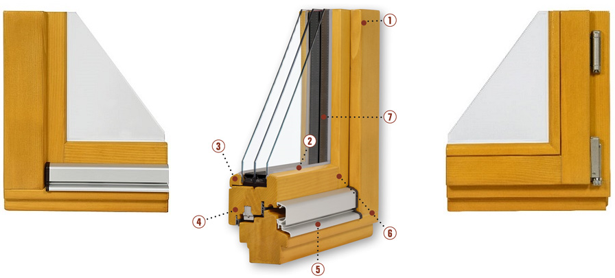 Является визуально привлекательным, при этом сохраняет легкость очистки поверхности стекла - Клееный брус в створке.